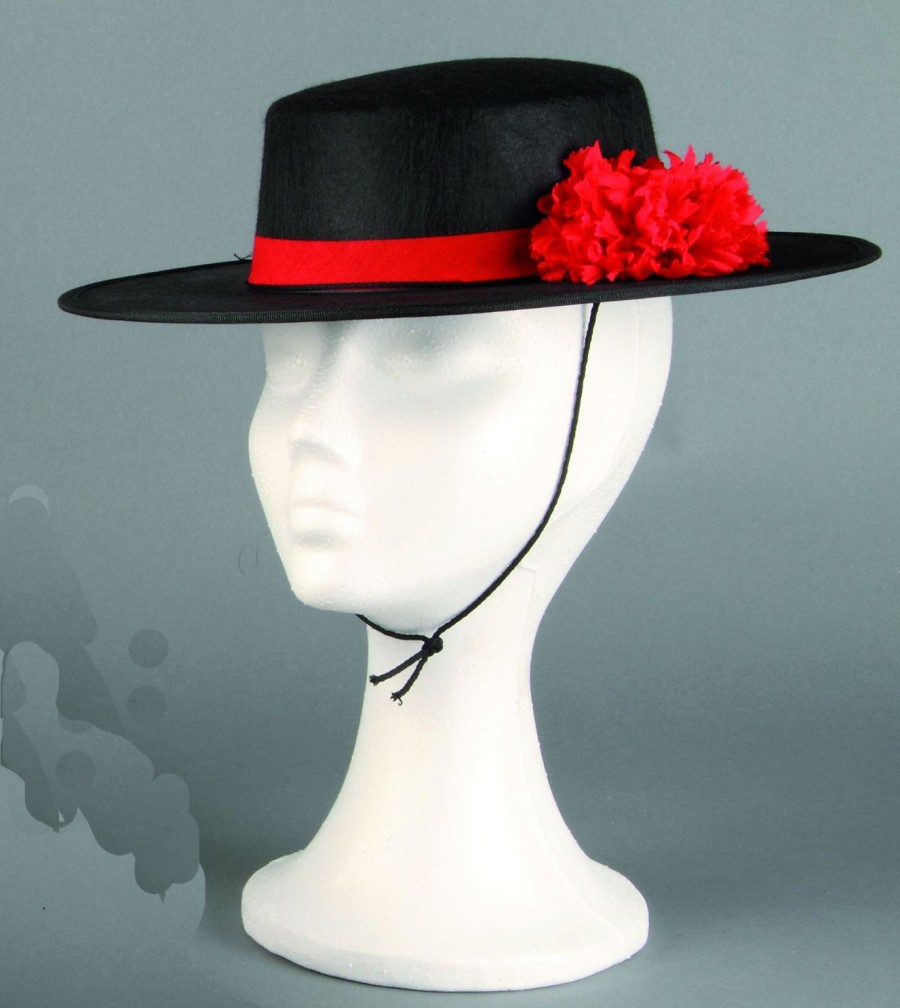 Sombrero en fieltro y flor en tela.